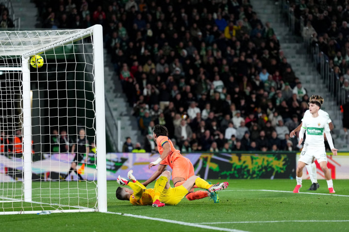 在客场对阵埃尔切的比赛中,红蓝军团上半场前30分钟便上演了一幕罕见场景:短短半小时内,皮球三次砸中门框——其中一次进攻中甚至连续两下击中门框!这既体现了球队强大的进攻压迫力,也暴露了他们在门前令人扼腕的运气。